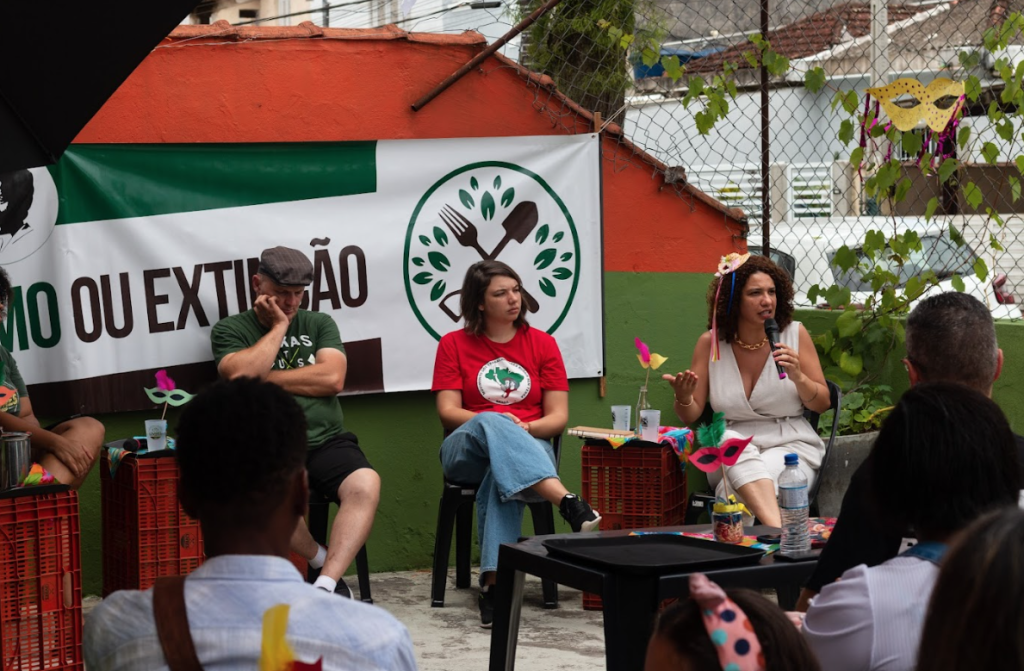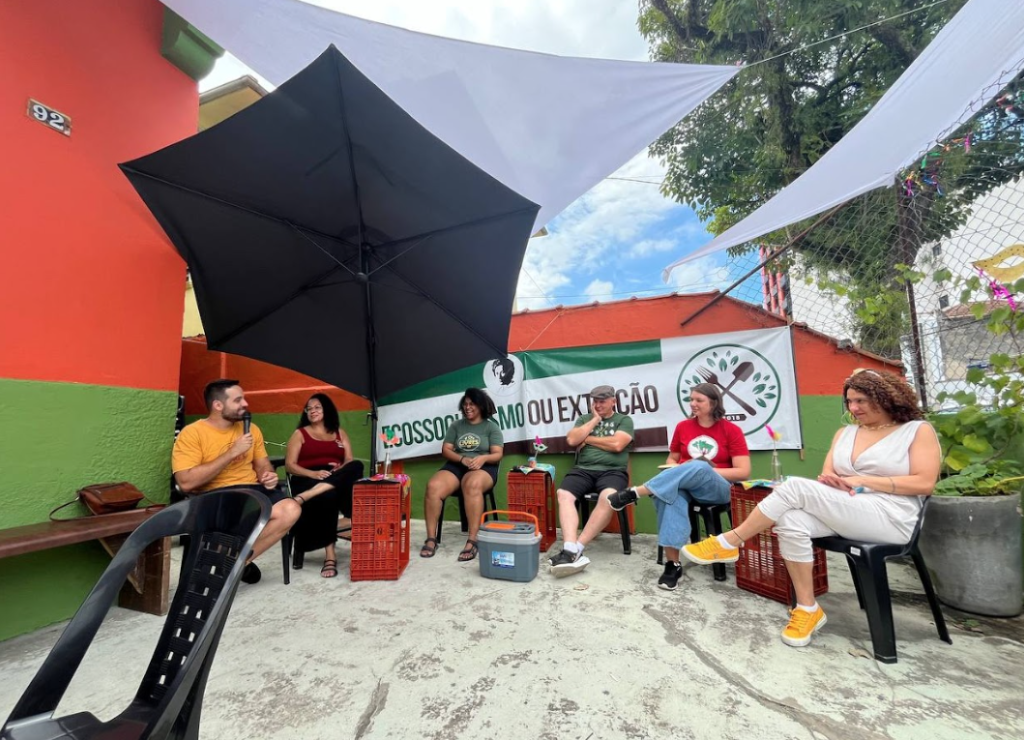 Com oficinas sobre Economia Solidária, Segurança Alimentar e Agroecologia, e distribuição de cestas com alimentos agroecológicos e orgânicos da agricultura familiar, as participantes conhecem experiências associativistas e experienciam o trabalho autogestionário na organização de uma Feira de Economia Solidária.